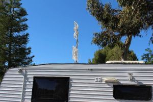 While the antenna was being replaced we also asked them to do a service. Manufacturer recommends a service every 12 months or 10,000Km which ever comes first and we had done about 15,000 so it was due. There had been a bit of grease leaking from 2 of the wheels so it was worth the check. The report came back with nothing wrong ready to go with a new antenna installed, brakes cheched and all bearings greased.