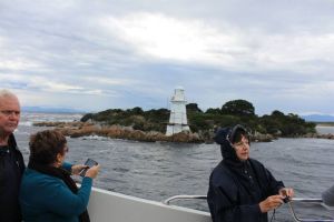 Leaving the dock we headed across Macquarie harbour towards the infamous Hells Gate which is a narrow opening from the Tasman Sea into Macquarie Harbour and can only be traversed by boats up to a certain size and in favorable weather. After experience a taste of ocean conditions we then traversed the entrance once again back into the relative safety of the harbour. From Hells Gate you cruise past a number of fish farms full of Alantic Salmon dotted around Macquarie harbour with the Captain giving a talk about the thriving industry as we pass by.