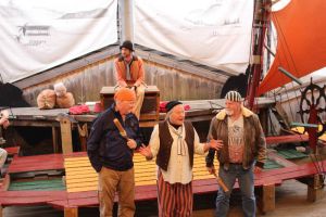 Back on dry land we came across a showing of the play that is billed as the longest running in the world called "The Ship That Never Was." It is a humourious story about the last ship that was built at Sarah Island and hijact by the convicts who built it escaping by sailing all the way to South America. It was very funny and has permanent cast of 3 which then expands to about 20 as they commandeer members of the audience to play several parts in the play.
