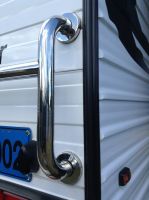 What to do next. I tried to get a price on a replacement bar from Retreat but at this point in time have not heard anything from them. I though of completely doing away with the bar and purchasing new grab handles for the left and right sides then put something in the middle to seal and hide the hole. The concealment caps have also been damaged and we are not sure if you can buy them as spares. My latest thought is to clean up the bar, mounting plates and concealment caps as best we can. Purchase stainless steel screws to re-attach the mounting plates to the posts of the grab rail. Seal the hole in the middle with silicone and get something I can use as gasket to go between the mounting plates and caravan wall to act as an insulator and provide addtional sealing for the hole. Will let you know the outcome. |