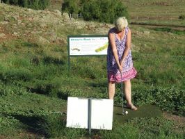 We are progressing well we have now done 9 holes of the Nullarbor links the worlds largest golf course. It has been a challenge Anne is playing much better than me I think Gay should consider her a golf partner. Apart from the Kalgoorlie course the fairways are a little questionalble actually scrub is a better description but the greens are okay its amazing how good astro turf is. The road has been good and the truckies have been very patient with us even though we travel much slower than them. We had some rain last night but just enough to dampen the dust and the temperatures have been around 21 Deg C. The skys have been a little overcast but the solar panel is still managing to keep the battery topped up and us in power.