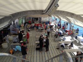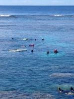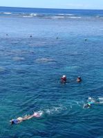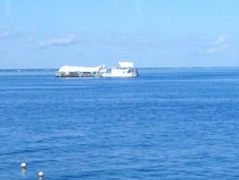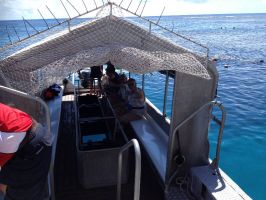 On the day we drove out to the Harbour checked in at terminal then boarded our boat after having the obligatory no obligation photo taken. The 90 minute trip out was reasonably smooth, a good sign the weather was going to be okay. On the way out the staff would try to sign you up for one of the paid activities on offer it was up to you if you wanted to do them or not. Graham wanted to do a Helichopter flight over the reef. Rhonda nor Anne wanted to go so I signed up as well. Our flight time would be given to us once we arrived at our destination.