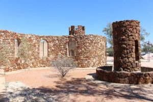 Amigos castle is one mans ambition to build himself a house out of stones after he got tired of Opal mining. He started by collecting the rocks around the local area but soon expanded further a field. He has been building this castle for the last 25 years and doesn't look like finishing it any time soon. He doesn't employ approved occupation healh saftey building methods for instance he used 44 gallon drums and wooden planks as scafolding.