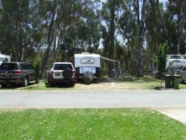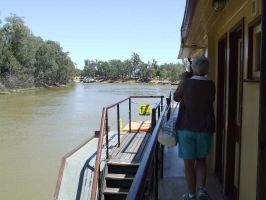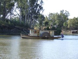Leaving Deniliquin we headed towards Moama-Echuca via the Cobb Hwy. We passed through Mathoura stopping for a short break to have morning tea then continued on towards Moama. Our next accomodation is at the Maidens Inn Tourist Park where we planned o stop for about 3 nights. The park is listed as a Big 4 but also belongs to the Aspen Parks group. We managed to aquire a nice site right above the Murray river where we can sit and watch all the house boats and paddle steamers meander by. The site is large with plenty of room for both caravan and car. We have seen some funny sights on the river. We watched 2 people just float down the river summerged up to their necks just letting the current carry them along. There was also a guy in a foot operated paddle canoe drifting down the river fishing and a number of people braving the cold water going for a swim.
