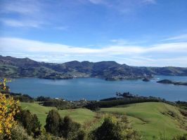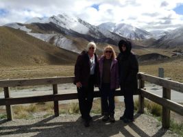 We drove over Lindis Pass which had a sparse covering of snow. We all jumped out at the parking area located at the top of the pass and decided to throw snowballs at each other. Getting back in we took off just as a large tourist bus pulled up that was close the peace would be briefly shattered. We stopped at Omaramara for fuel and lunch the headed towards the coast passing through more spectacular lake country. We spotted a lot more caravans in this area as there were bountiful camping spots by the lakes with the ground a lot flatter than further south from where we had come.