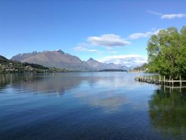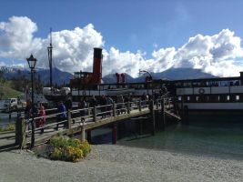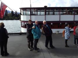 Day 8 Queenstown It rained overnight but the morning was clear. Fresh snow had fallen on the mountains and it was bright up enough (although a bit cold) for us to go for walk around the lake. We watched the jet boats passed under the bridge we stood on before returning back to our unit. Taking a drive into town we booked ourselves and Frank and Alice a lake cruise on the TSS Earnslaw as well as a horse trek over at Walter Peak.