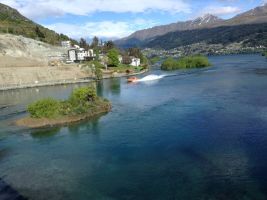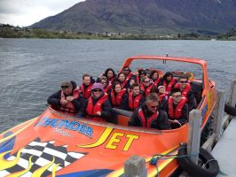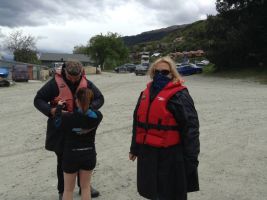 By the afternoon weather had once again degenerated into a cold wind with showers. John and Leila decided they would like to experience a jet boat ride which goes out into Lake Wakatipu and up one of its tributaries. A strong cold wind was now blowing across the lake and the boat was bouncing as it pulled up to the small jetty. Undeterred they boarded the boat heading off into the wild waters of the South Island rivers. They returned about an hour later all excited about how it had been an exhilarating trip.They made it back to the accommodation just as it began raining constantly.