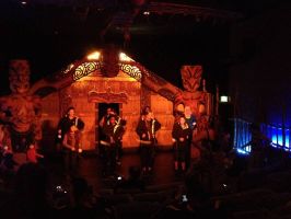 That evening we headed out for dinner at the Stratosfare resturaunt. We had intended to ride the luge beforehand but due to the falling rain we decided against it. Riding the the gondola the the rain on the windows had obscured some of the view but we could still make out Queenstown. Arriving at the top we all ordered drinks then Anne and I took in a Maori Huka demonstration which was hugely entertaining. The first part was somber as a sign of respect to their culture but the fun soon started with lots of audience participation. After the show we joined the others at a window seat overlooking Queenstown way below.
