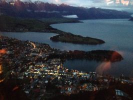 The buffet dinner was scrumptious with a wide selection of culinary delights from different nationalities. The food tasted fresh which is sometimes at odds with the buffet style of dining. Unfortunately Alice couldn't make it as she was not feeling well we hoped she would be okay for the horse ride in the morning. After stuffing ourselves silly we returned to the ground once again via the gondola. It was still raining but we could clearly see the lights of Queenstown as we made our way down again. Exiting we made a dash for the car then made our way back to the apartment to retire for the evening.