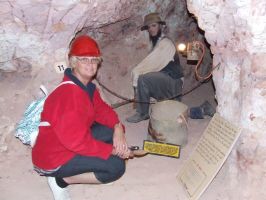 Repairs were finally made and we were underway again heading towards William Creek unfortunately half way down the track we had to turn around again as the line was still leaking. After another hour of repairs it was decided not to continue to William Creek as it would be well after Midnight before we would get back to Coober Pedy so we decided not go any further return direcly back to Coober Pedy. It was a bit of a shame we couldn't see all of the tour but it did give us an insite on life in the outback and we can now say we have been to Oodnadatta and see the Pink Roadhouse.