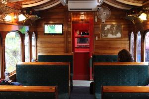 Arriving at the station we were given our tickets and allocated a seat. Boarding the heritage carriage and settling into our seats we ended up opposite a couple who were from Perth but had lived in Bunbury once again proving we live in an ever shrinking world. The engine pulling the carriages was powered by steam adding to the feeling of what it would have been like to travel by rail in the earlier days. The train rumbled along through rain Forrest then followed the King river. We stopped at 2 stations the first one called Teekopana where we alighted for a look around the station then walked down to an observation platform overlooking the river.